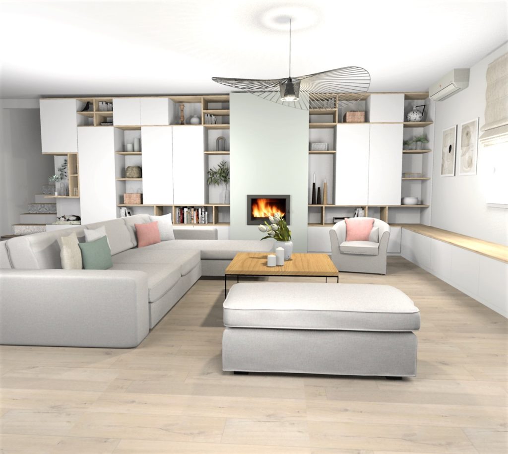 Oui. Tout débute par un rendez-vous pour déterminer les besoins de mes clients, prendre connaissance des lieux et définir le cahier des charges du projet. Si le rendez-vous est en présentiel, je fais un relevé de côtes très détaillé et un reportage photos afin de préparer au mieux la réalisation des plans. Je retranscris ensuite ce relevé sur Sweet Home 3D pour en extraire en premier lieu un plan 2D de l’existant.  Je travaille ensuite à la conception du projet avec plan 2D et vues 3D. Je présente d’abord à mes clients plusieurs versions 2D pour valider les nouveaux volumes, nouvelles implantations. Je leur fournis aussi des vues 3D très simples pour mieux appréhender les volumes. Une fois leur version préférée choisie (et souvent après quelques modifications), je peaufine les visuels 3D en intégrant des matières, du mobilier, de la déco, etc., pour un meilleur rendu et faciliter la projection de mes clients.
